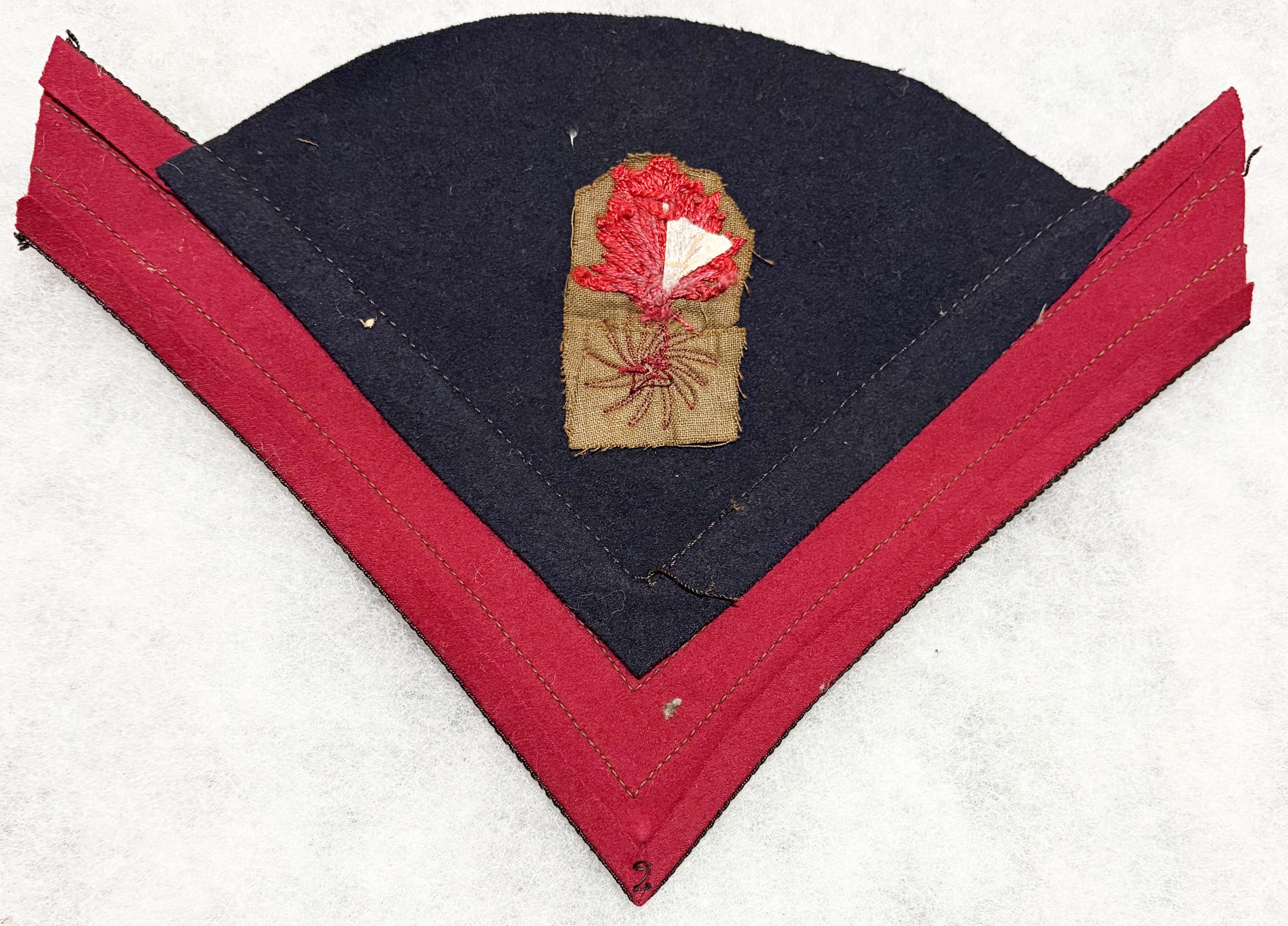1889 Ordnance Sergeant Chevron. Multi-piece wool construction with machine embroidered details. Unused.