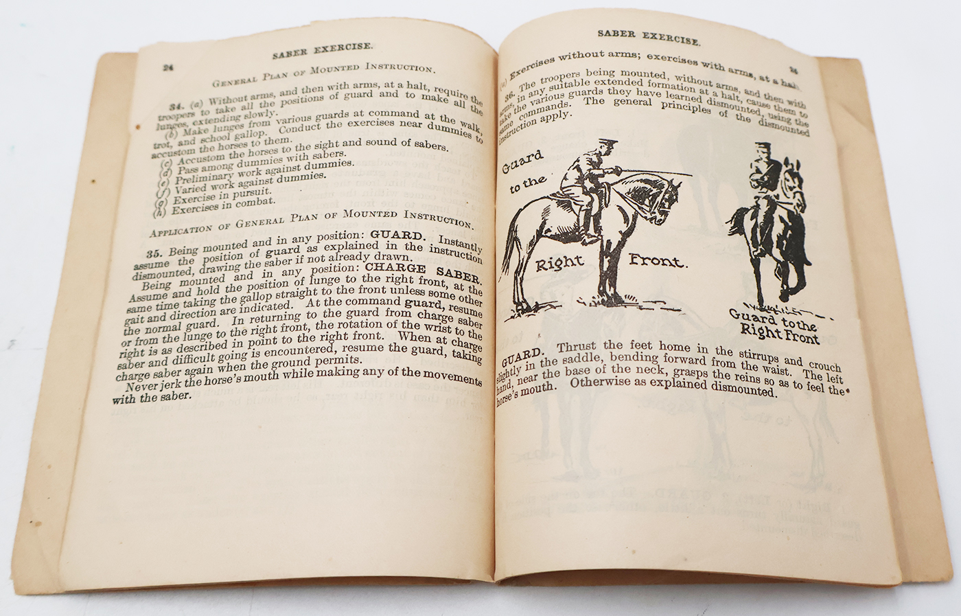 WWI US Army Saber Exercise Manual. Softbound. Dated 1914. 40 pages. Lots of great illustrations and photos.Wear to the cover, but pages and binding are strong. No torn or missing pages.