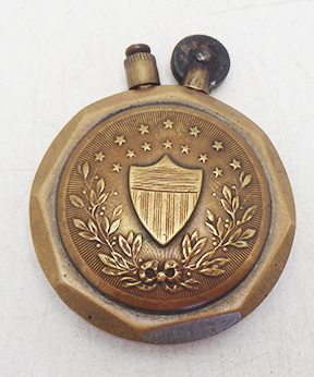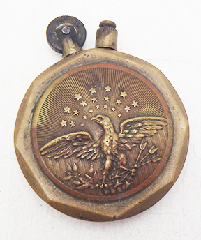 WWI Era Patriotic Eagle French Made Trench Art Lighter. Brass body with Eagle on the front and shield on the back. Clean and in good condition.