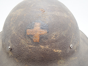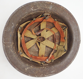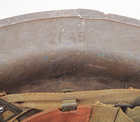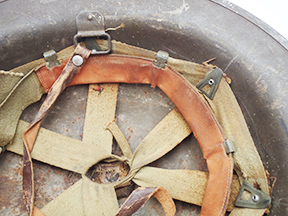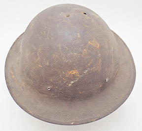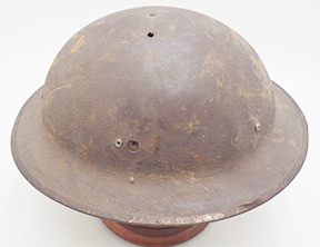 WWI M1917 helmet painted to 33rd Infantry Division. The steel shell is solid with good corking and no big dents. There is some minor surface rust and scratches. The liner is a WWII replacement. The chinstrap is a M1 liner leather strap.